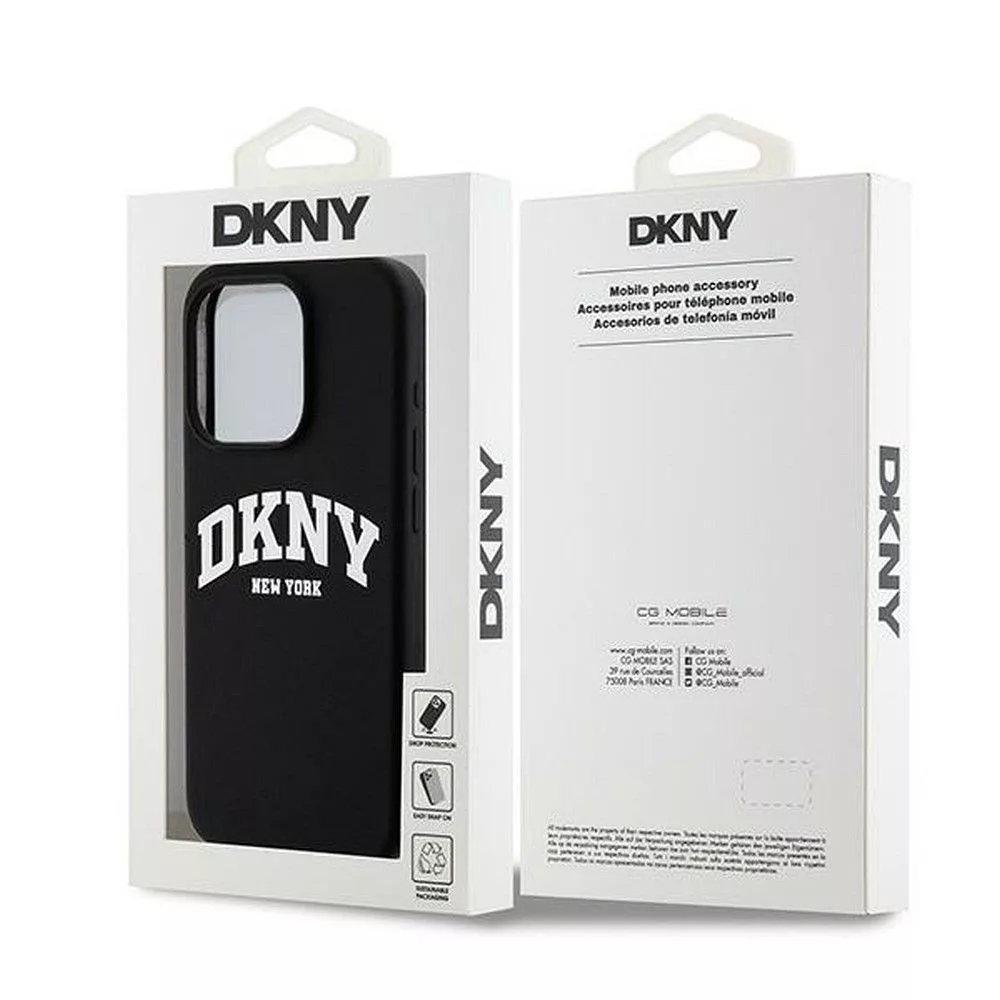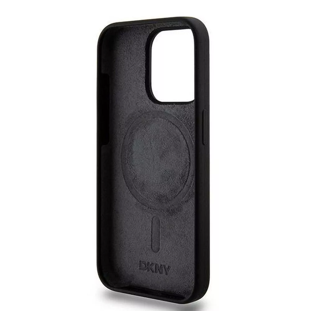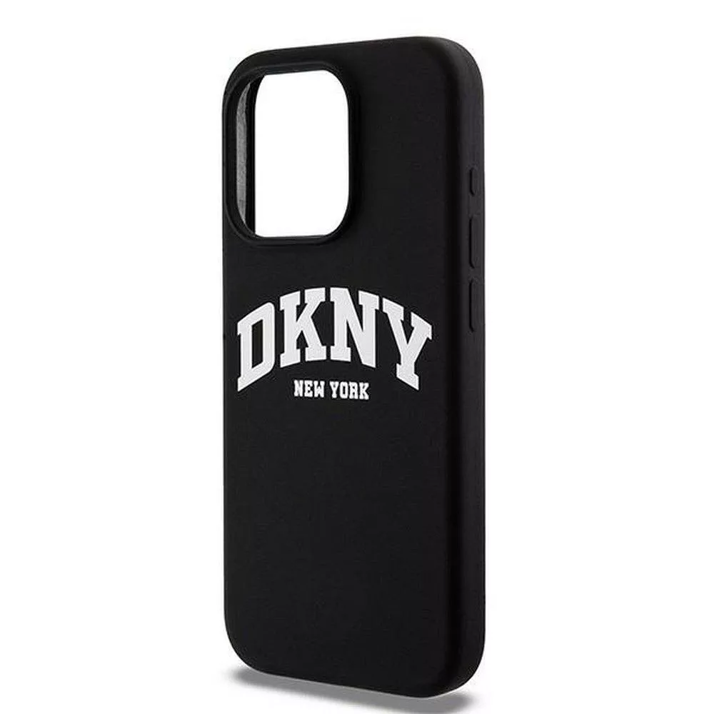 DKNY iPhone 15 Pro compatible with MagSafe DKHMP15LSNYACH hátlap, tok MagSafe Silicone W/White Arch Logo, fekete