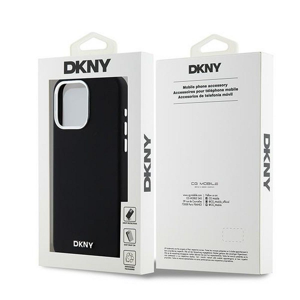 DKNY iPhone 15 Pro Max compatible with MagSafe DKHMP15XSMCHLK hátlap, tok MagSafe Silicone W/Horizontal Metal Logo, fekete