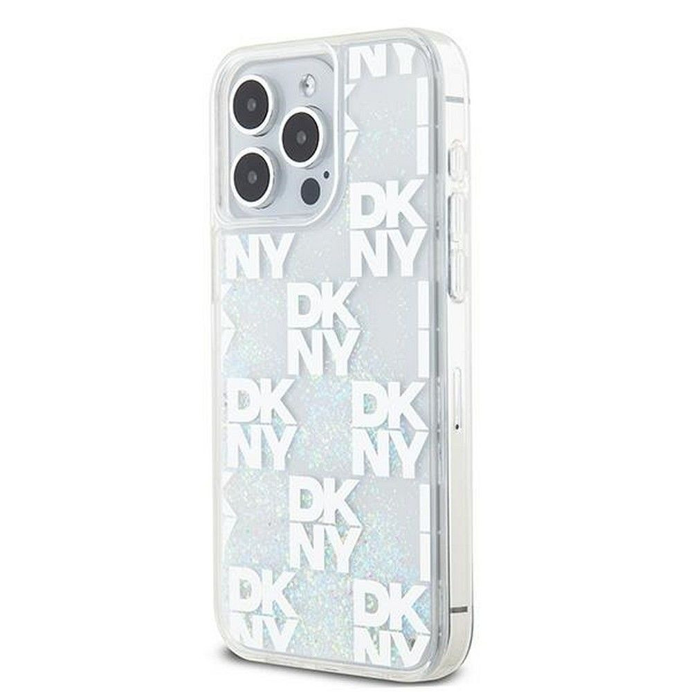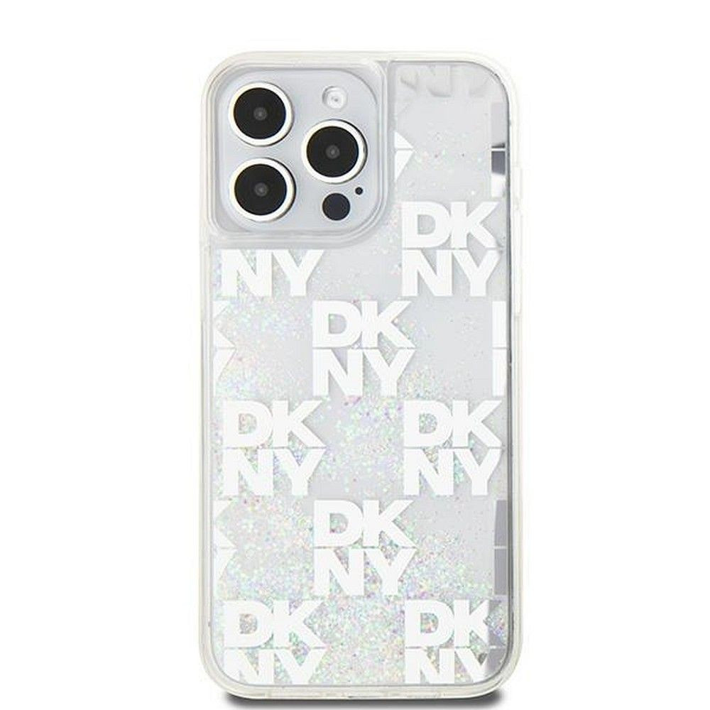 DKNY iPhone 15 Pro Max DKHCP15XLCPEPT Liquid Glitters W/Checkered Pattern hátlap, tok, fehér