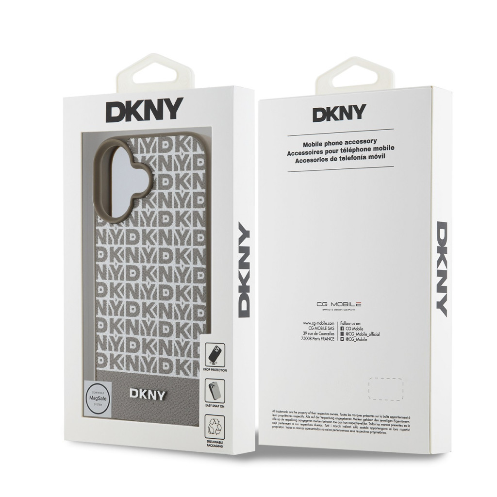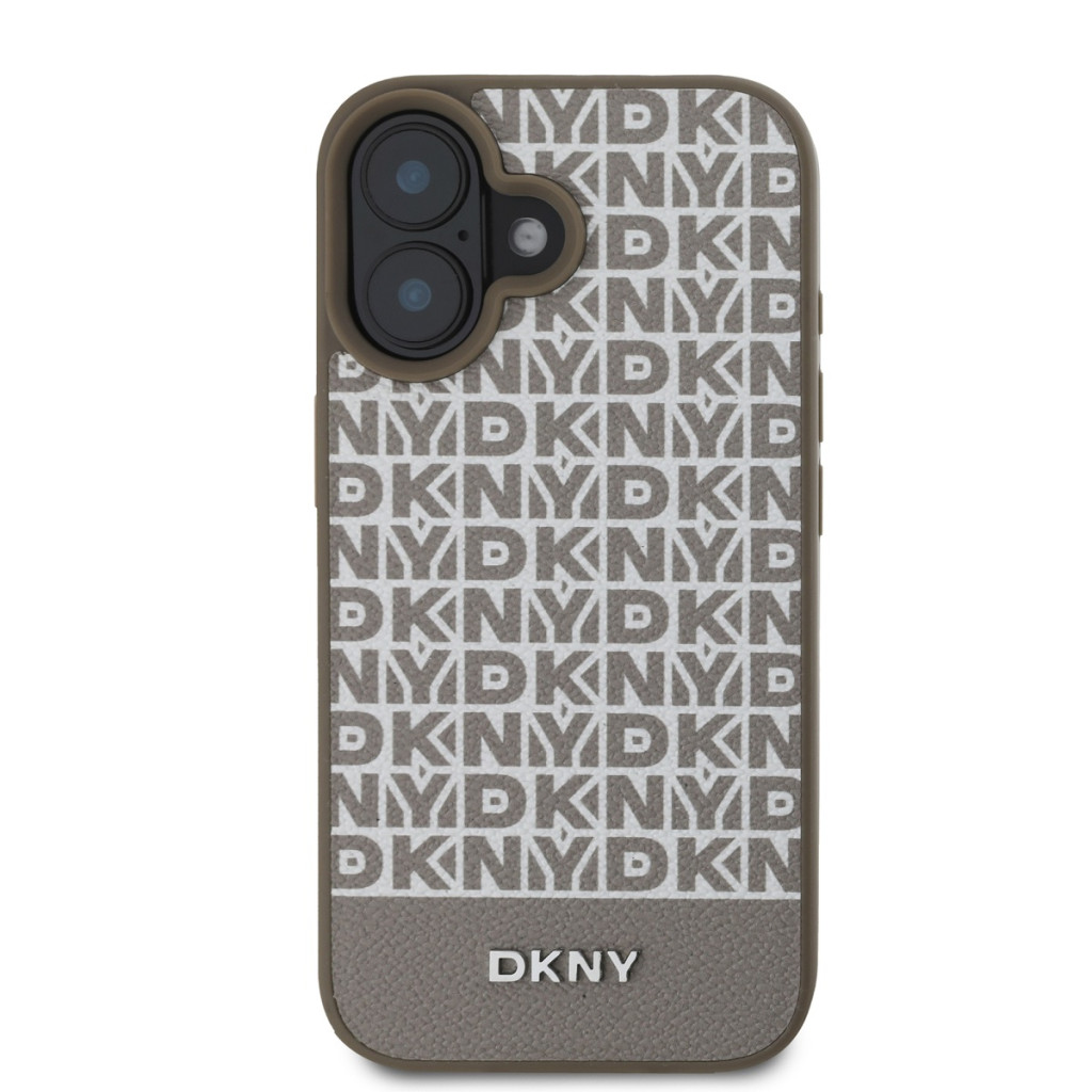 DKNY iPhone 16 PU Leather Repeat Pattern Bottom Stripe (DKHMP16SPSOSPW) MagSafe kompatibilis hátlap, tok, barna