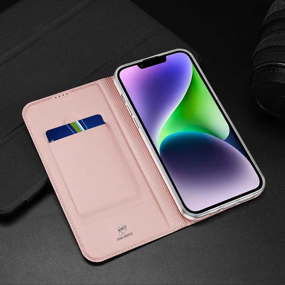 Dux Ducis Skin Pro iPhone 15 Pro oldalra nyíló tok, rozé arany