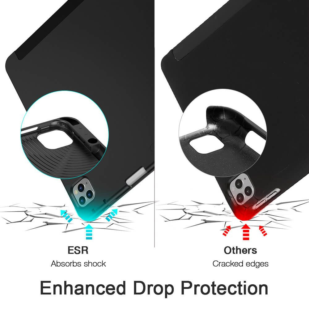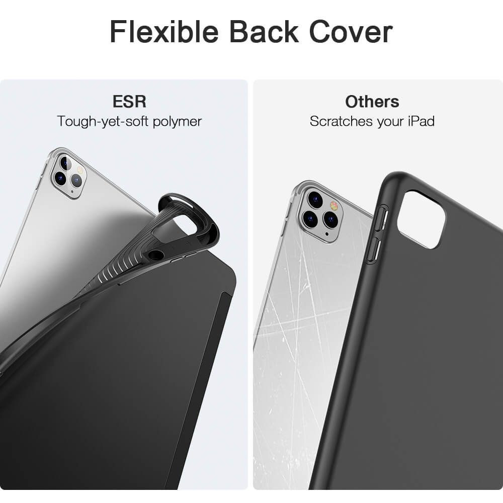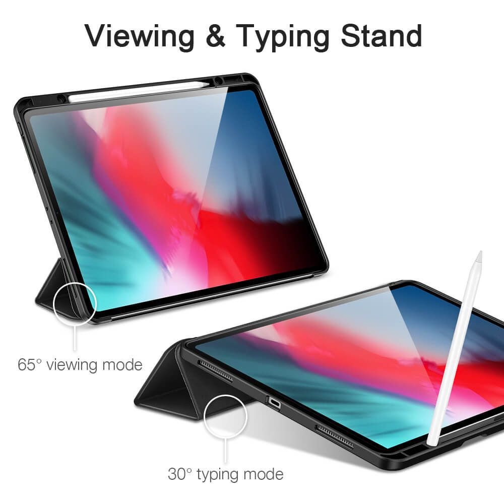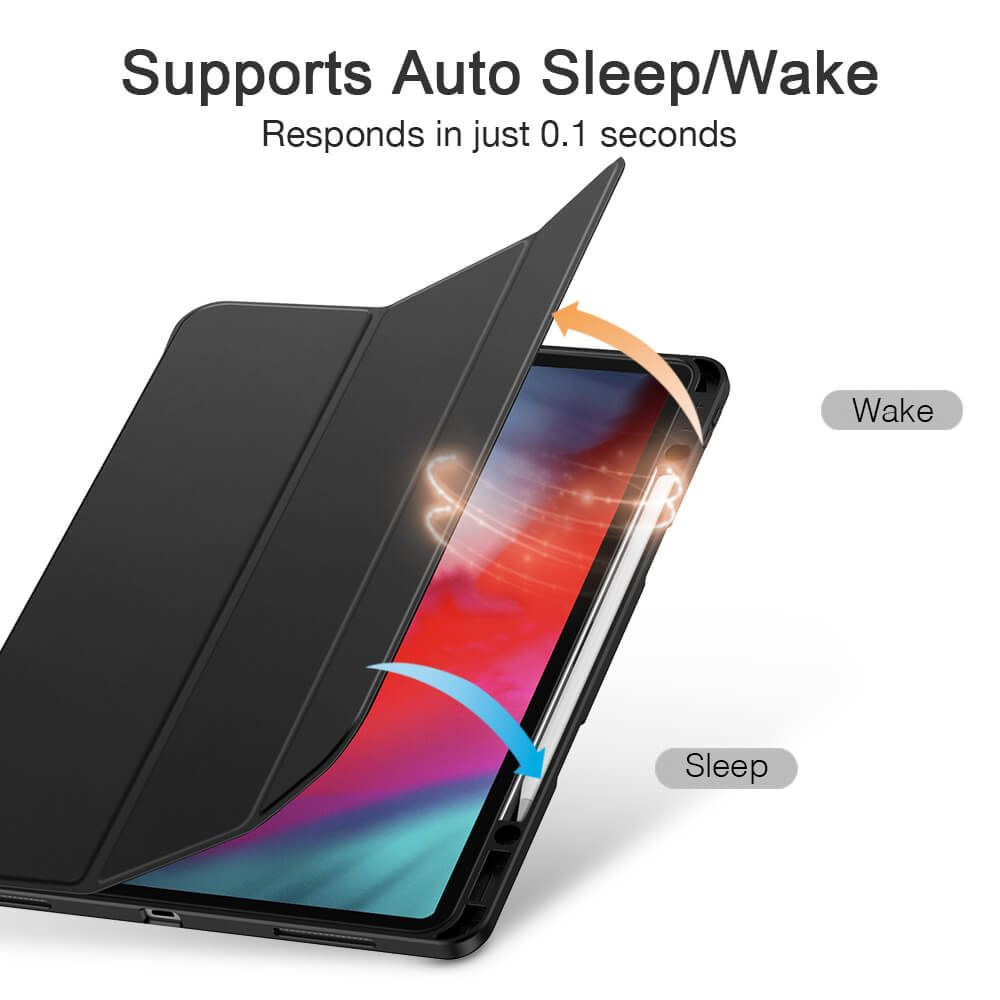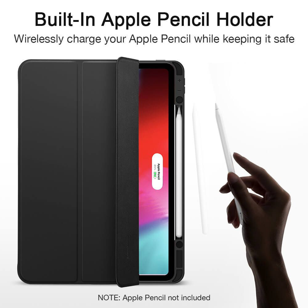 ESR iPad 12.9 (2018/2020) Rebound Pencil oldalra nyíló okos tok, érintőceruza tartóval, fekete