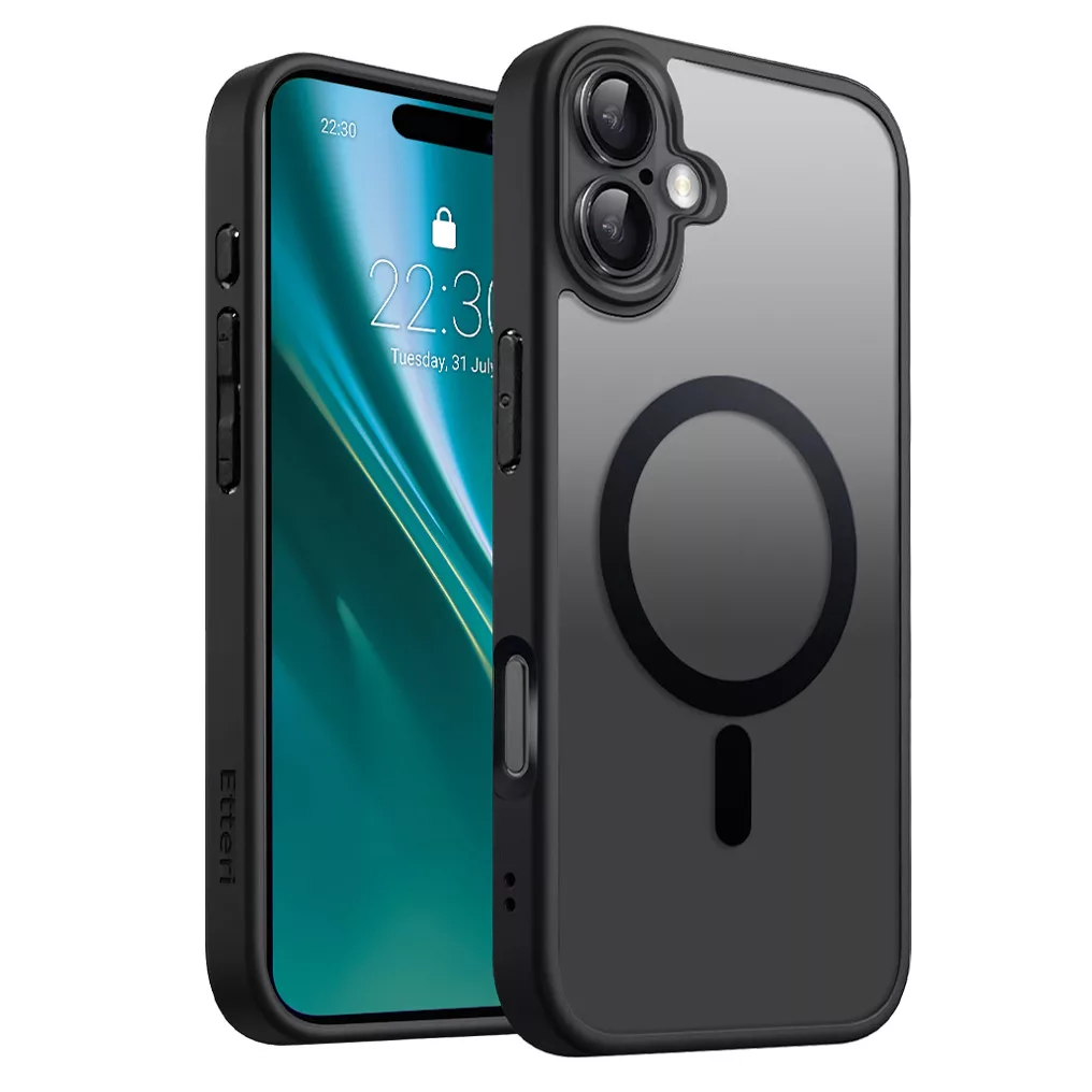 Etteri Matt Mag case iPhone 16 MagSafe matt hátlap, tok, fekete-átlátszó