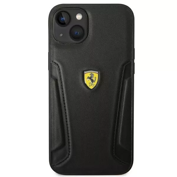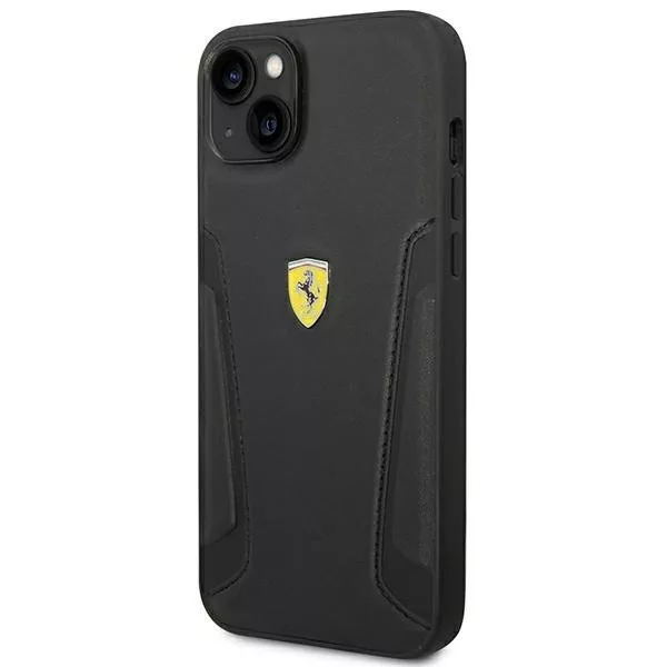 Ferrari FEHCP14MRBUK Leather Stamp Sides Apple iPhone 14 Plus bőr hátlap tok, fekete