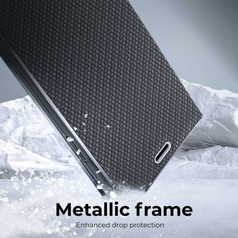 LUNA Book Carbon iPhone 13 Pro oldalra nyíló tok, fekete