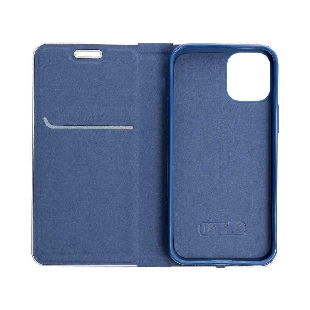 LUNA Book Carbon iPhone 13 Pro oldalra nyíló tok, sötétkék