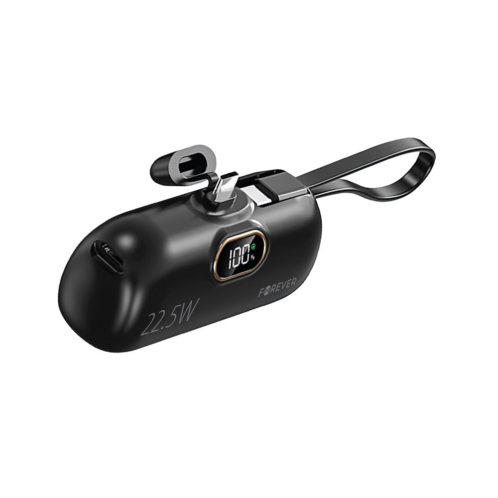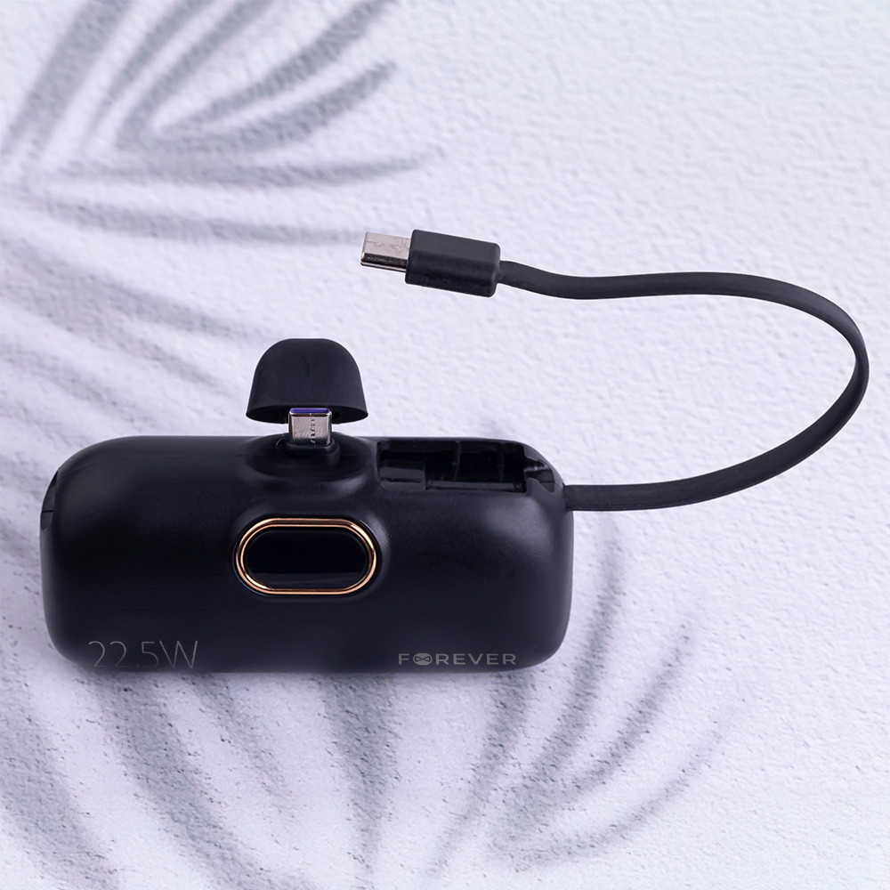 A Mini Power Bank MTB-100 Forever modern és praktikus megoldás minden okostelefon-használó számára, aki napközben további energiaforrásra szorul. Kompakt kialakításának köszönhetően az eszköz könnyen csatlakoztatható az okostelefon aljához, ami nemcsak helyet takarít meg, hanem lehetővé teszi a készülék kényelmes használatát töltés közben is. A Mini Power Bank USB-C csatlakozóval és USB-C kábellel van felszerelve, így egyszerre két eszköz töltése is lehetséges.