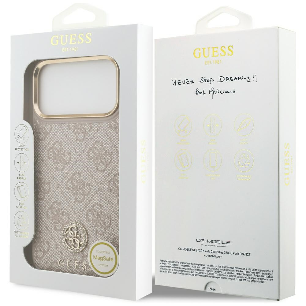 Exkluzív védőtok a neves Guess márkától az elegancia és a csúcsminőségű stílus kombinációja. A tokot kiváló minőségű eko-bőr borítja, melyet a Guess-re jellemző 4G minta díszít.