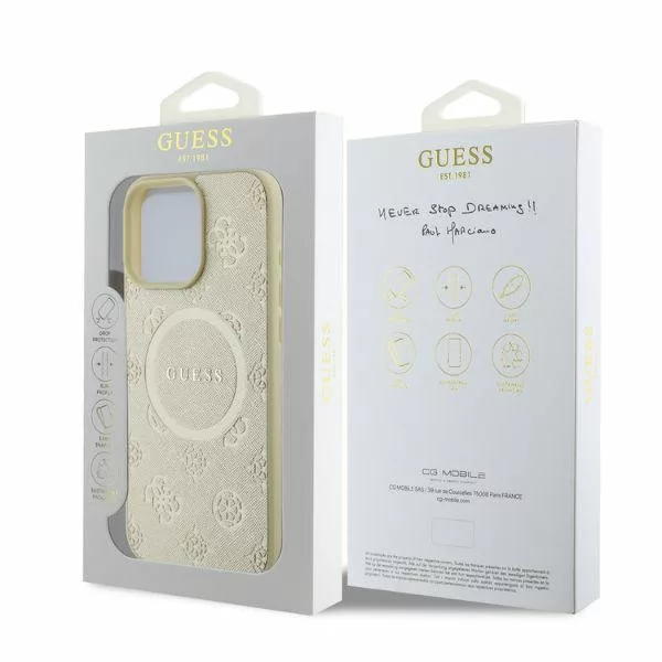 Guess case iPhone 16 Pro 6,3" GUHMP16LPSAPSMED tok, arany Saffiano Peony Classic Logo MagSafe