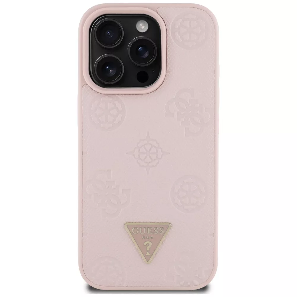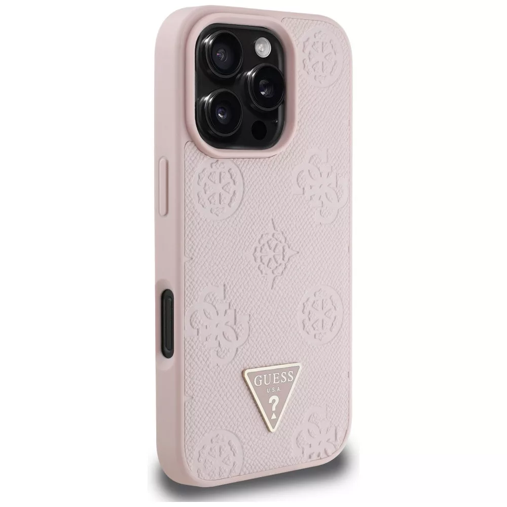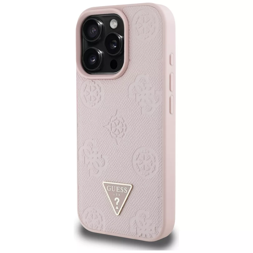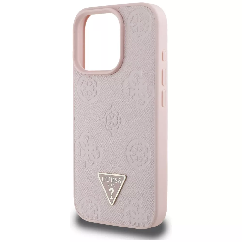 Guess Grained Hot Stamp Peony Triangle Logo MagSafe iPhone 16 Pro tok, rózsaszín