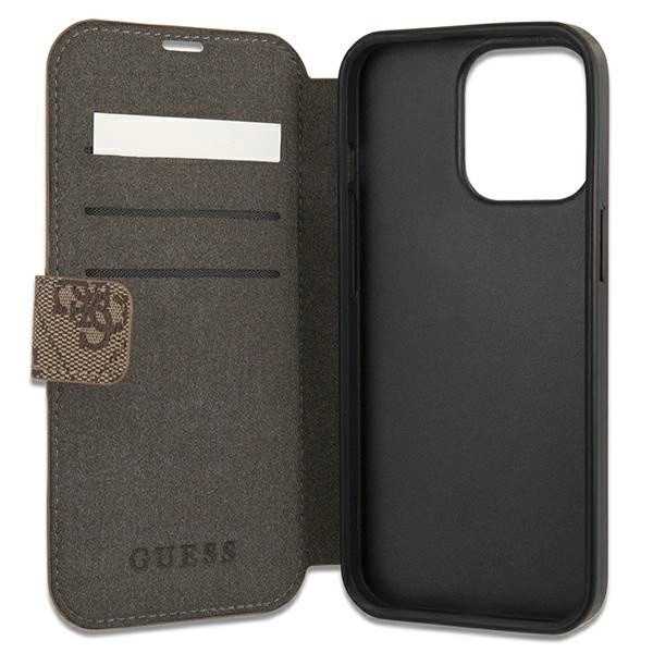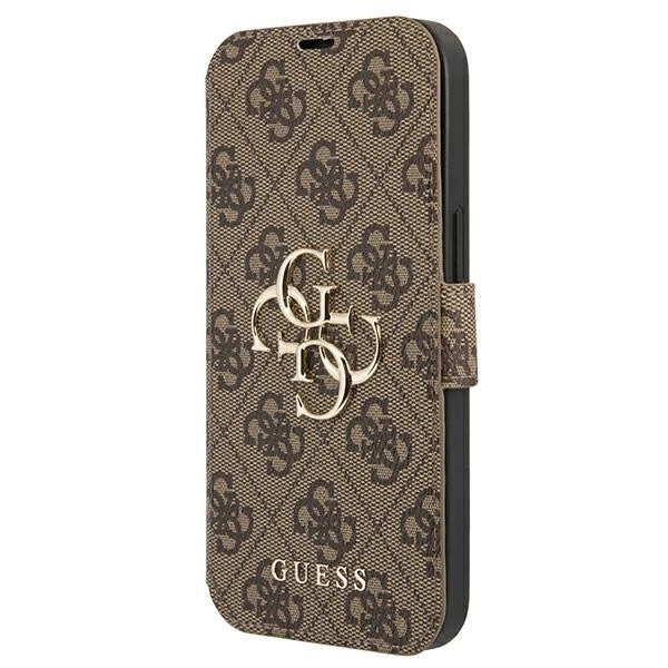 Guess GUBKP13X4GMGBR 4G Big Metal Logo iPhone 13 Pro Max 6.7", oldalra nyíló tok, barna