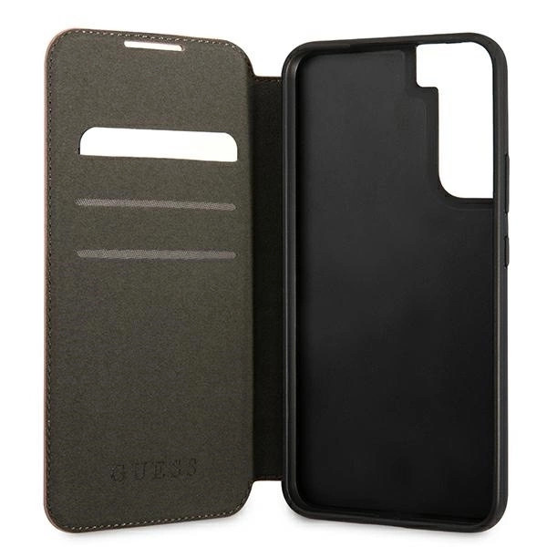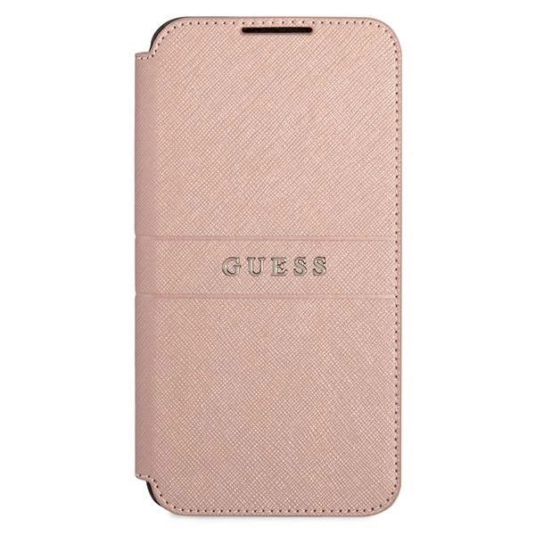 Guess GUBKS22MPSASBPI Saffiano Stripes Samsung Galaxy S22 Plus, oldalra nyíló tok, rózsaszín