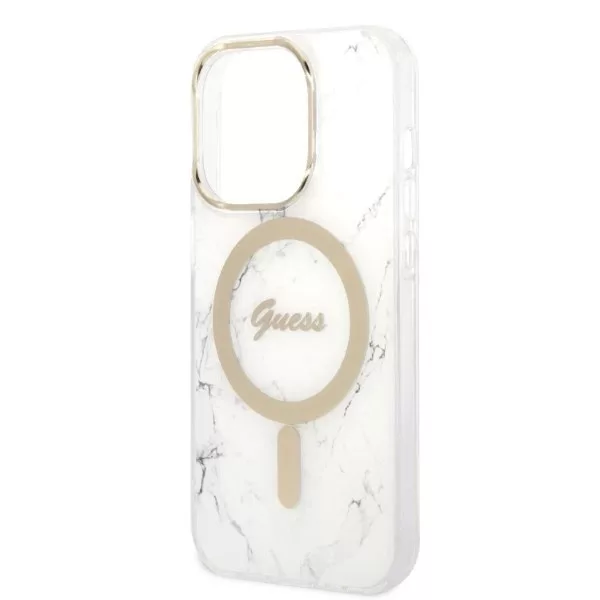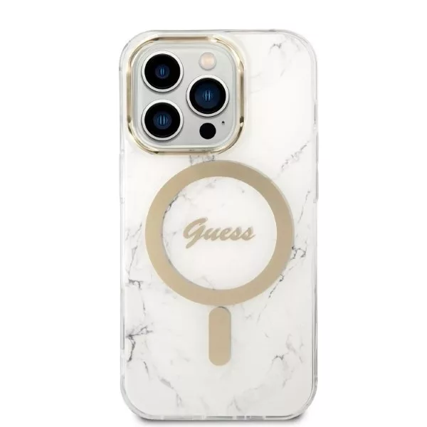 A szokatlan vizuális hatásokat arany kiegészítők adják, mint a kamera körüli keret és a Guess divatház emblémája. Az arany kiegészítők használatának köszönhetően a tok melegebb karaktert kap. A maximális felhasználói kényelem érdekében a tok egy MagSafe technológiával kompatibilis mágneses gyűrűvel van felszerelve, amely gyors, vezeték nélküli töltést tesz lehetővé.