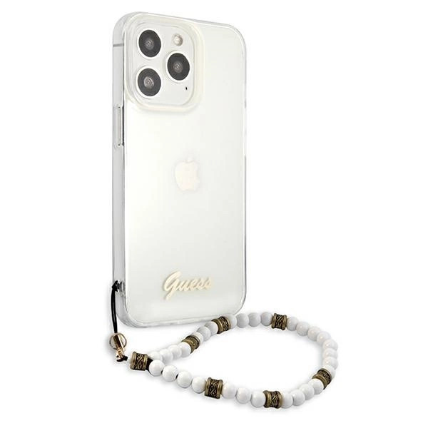 Guess GUHCP13LKPSWH iPhone 13 Pro/13 6.1" hátlap, tok, fehér Pearl, átlátszó