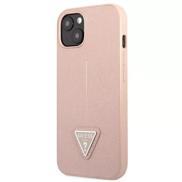 Guess GUHCP13SPSATLP iPhone 13 mini 5.4" hátlap, tok SaffianoTriangle Logo, rózsaszín