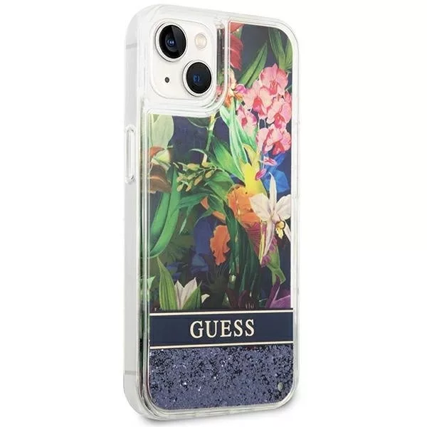Guess GUHCP14MLFLSB iPhone 14 Plus 6.7 " hátlap, tok Flower Liquid Glitter, kék