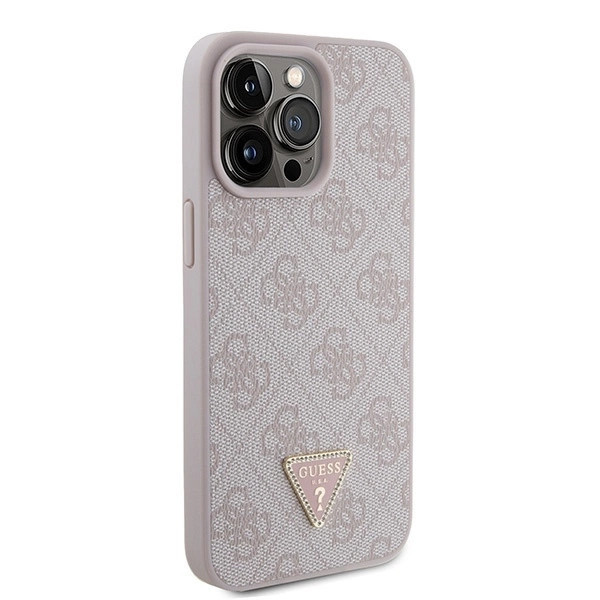 A kollekció egyediségét a finom ökológiai bőr hangsúlyozza, eleganciát és finom bájt kölcsönözve neki. Egyedülálló jellegét az ökológiai bőrre alkalmazott kiváló minőségű 4G nyomtatás adja, amely stílust és eleganciát kölcsönöz. Ezt a kifinomult kollekciót kiegészíti a tokon található, jellegzetes Triangle alakú, kristályokkal kirakott Guess logóval ellátott folt, amely kiemelkedik az egész dizájn hátteréből, és hangsúlyozza annak exkluzív jellegét.
