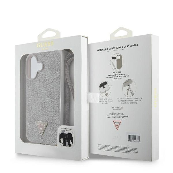 Guess GUHCP16SP4TDSCPP iPhone 16 6.1" Leather Metal Logo Strass Crossbody tok, rózsaszín