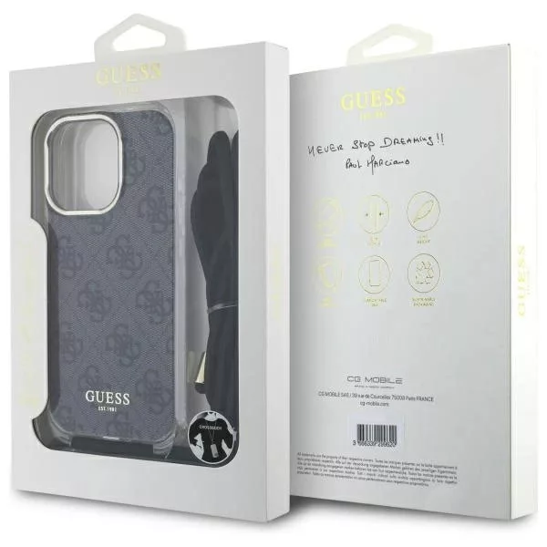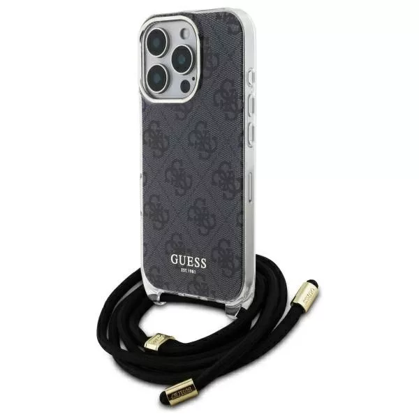 Guess GUHCP16XHC4SEK iPhone 16 Pro Max, 6.9" tok, fekete Crossbody Cord 4G Print
