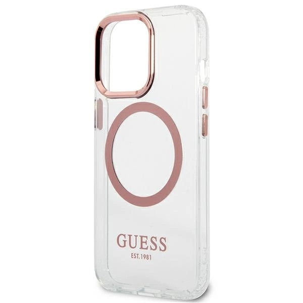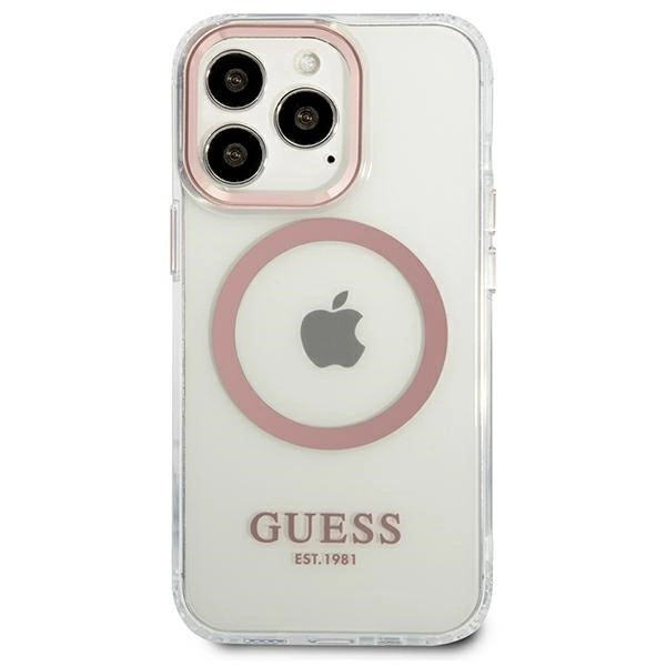 A tok tökéletesen kiemeli az iPhone egyedi dizájnját, ezüstszínű elemekkel díszített, mint például a lencsék körüli keret, a gombok és a Guess logó. A tok a MagSafe vezeték nélküli töltővel kompatibilis mágneses gyűrűvel van ellátva, amely gyors és egyszerű töltést biztosít. A mágneses gyűrű tökéletesen illeszkedik a borító színeihez.