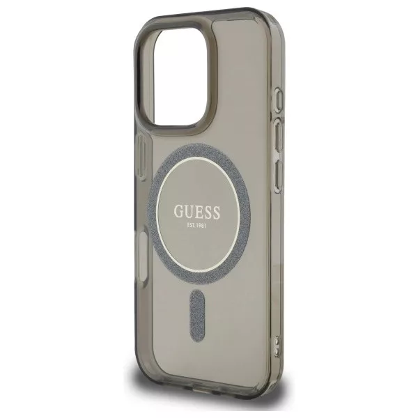 Guess GUHMP16LHFGEREK iPhone 16 Pro 6.3", tok, fekete IML Glitter Circle MagSafe