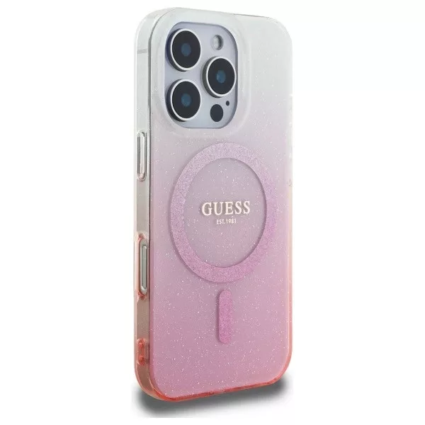 Guess GUHMP16LHGRCELP iPhone 16 Pro 6.3" tok, rózsaszín hardcase IML Glitter Gradient MagSafe