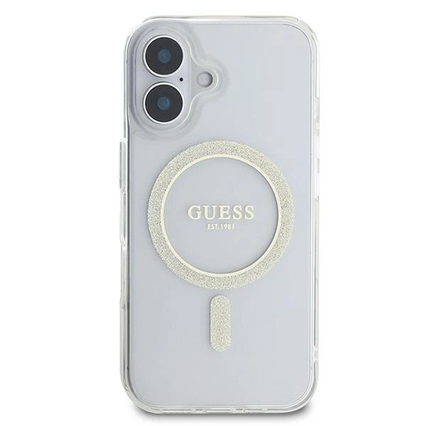 Guess GUHMP16SHFGERET iPhone 16 6.1" IML Glitter Circle MagSafe tok, átlátszó