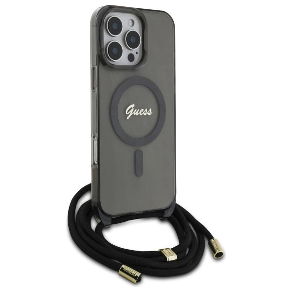 Guess GUHMP16XHCTSGNSK iPhone 16 Pro Max, 6.9" tok, fekete Crossbody Cord Script MagSafe
