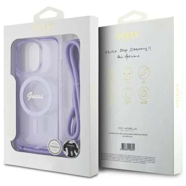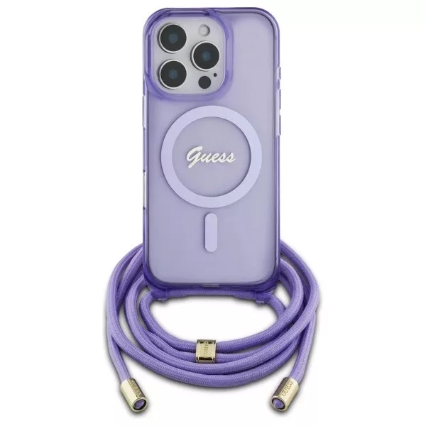 Guess GUHMP16XHCTSGNSU iPhone 16 Pro Max, 6.9" tok, lila hardcase Crossbody Cord Script MagSafe