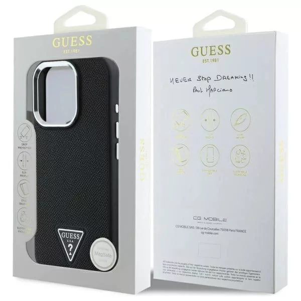 Guess GUHMP16XPGTSPSK iPhone 16 Pro Max 6.3" tok, fekete hardcase Grained Triangle MagSafe