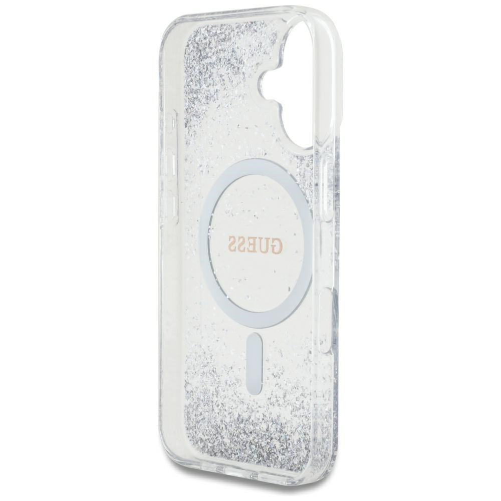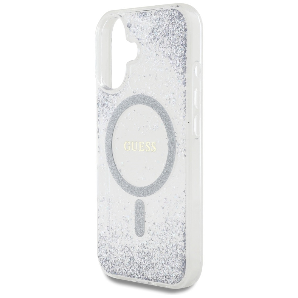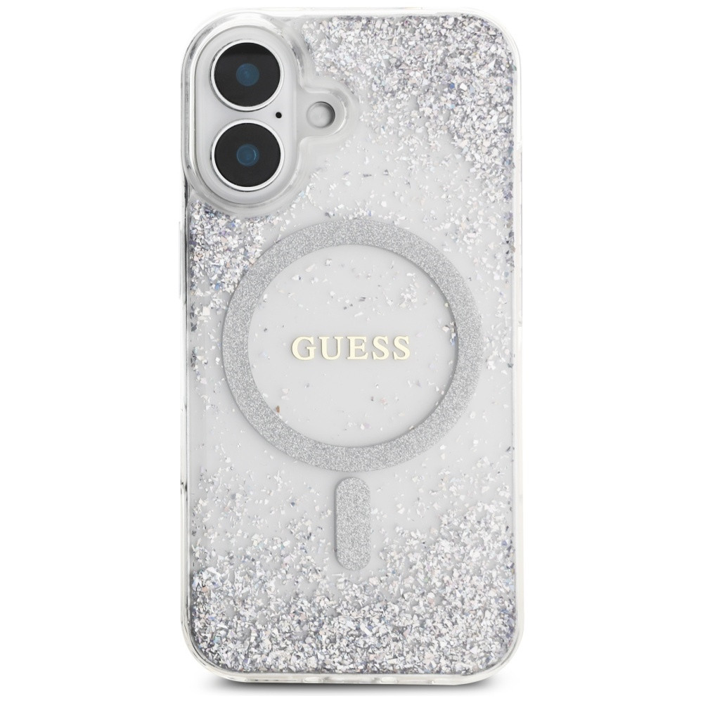Guess HC Resin Bottom Glitter iPhone 16 MagSafe tok, ezüst