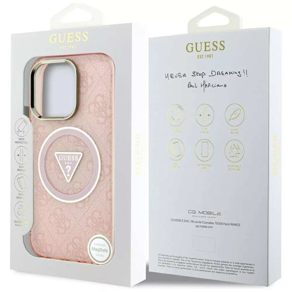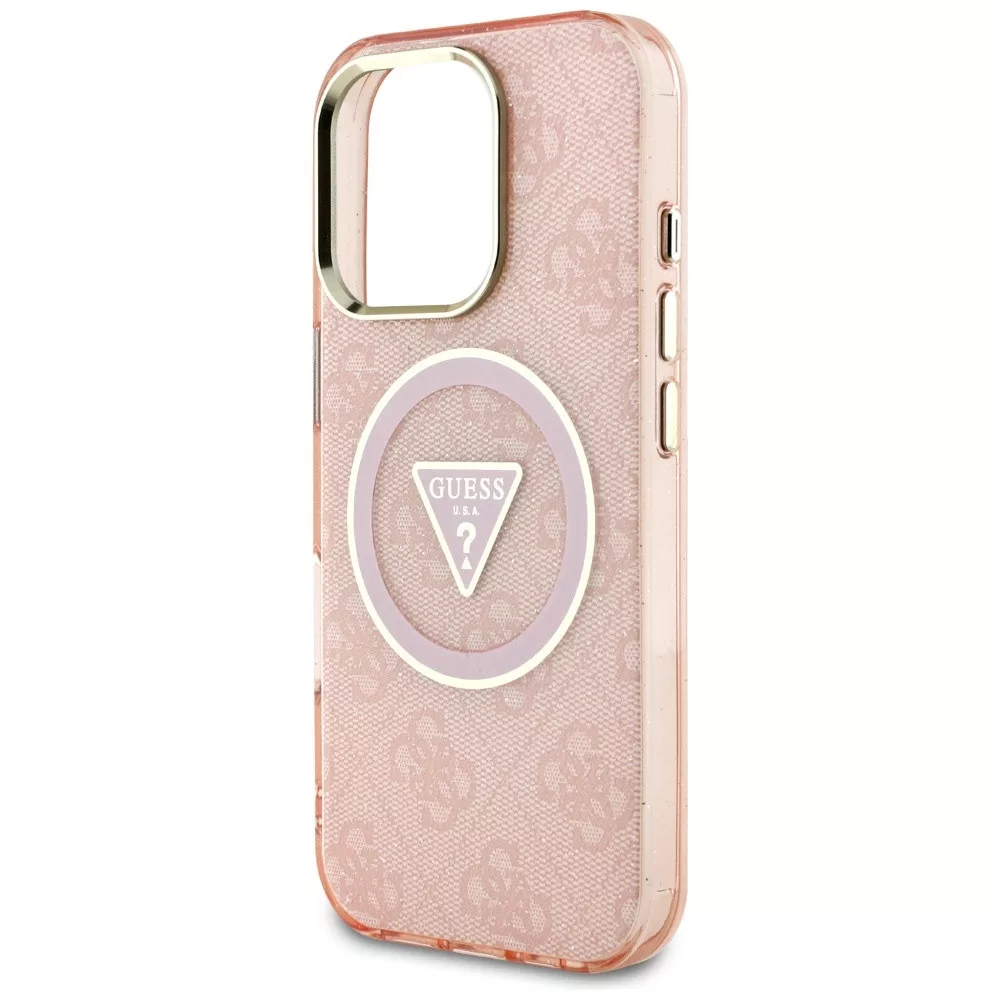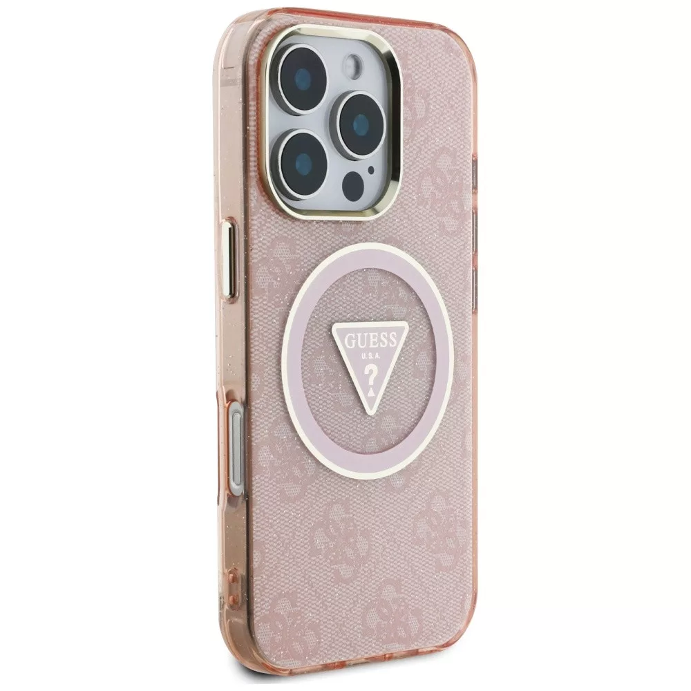 Guess IML Metal Glitter 4G Circle Triangle MagSafe iPhone 16 Pro Max tok, rózsaszín