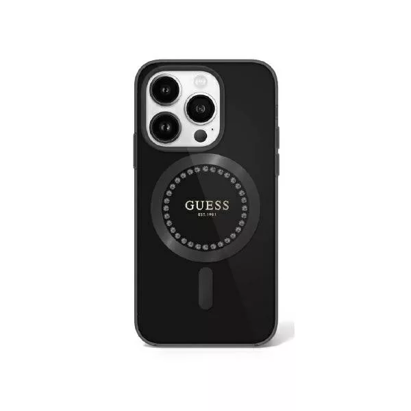 Guess IML Rhinestones MagSafe iPhone 16 Pro Max GUHMP16XPFTDTEK hátlap tok, fekete