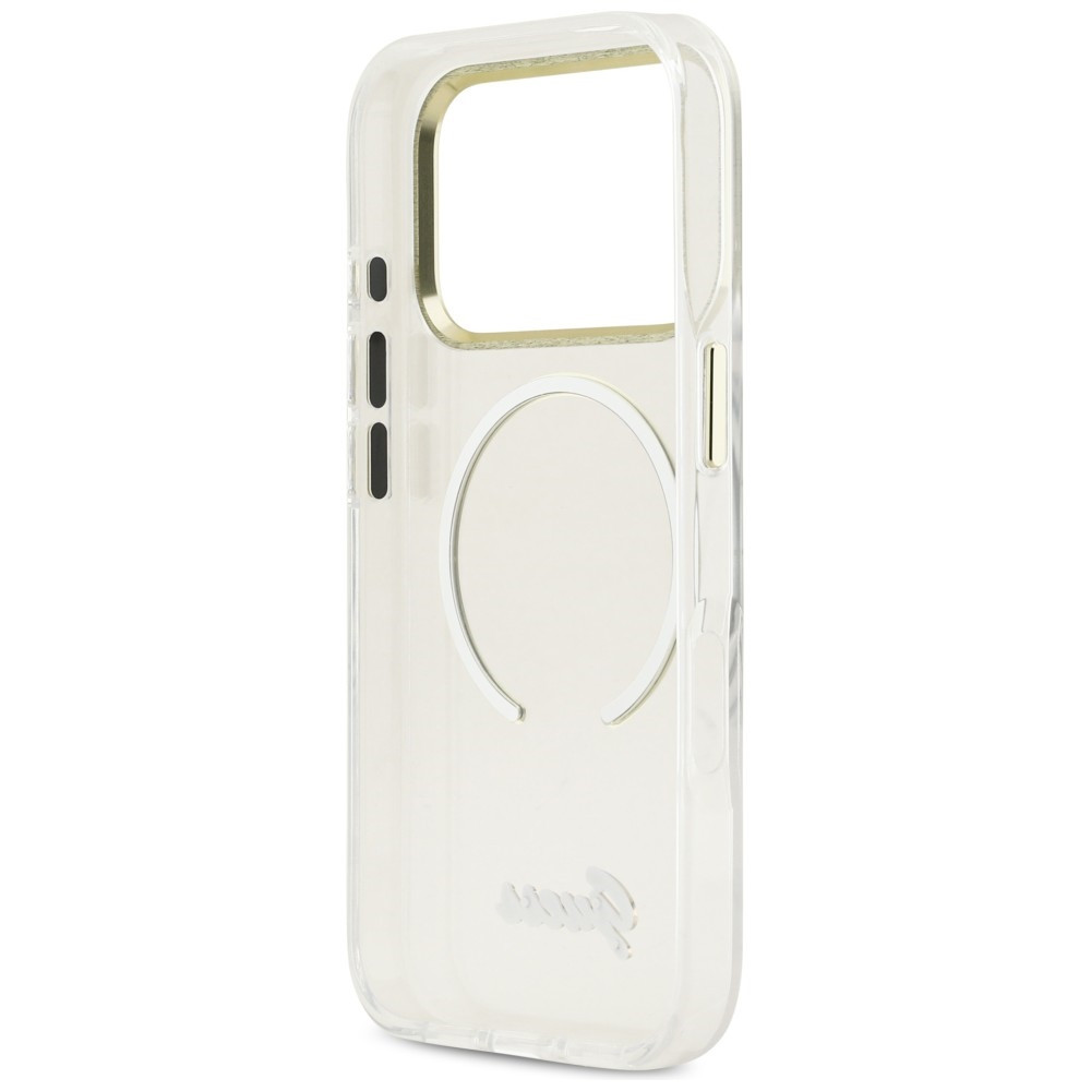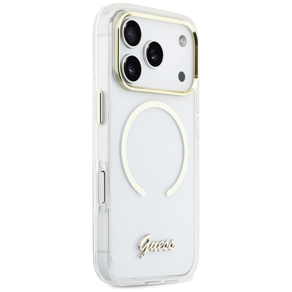 Guess IML Script Metal MagSafe iPhone 17 Pro Max tok, átlátszó-arany