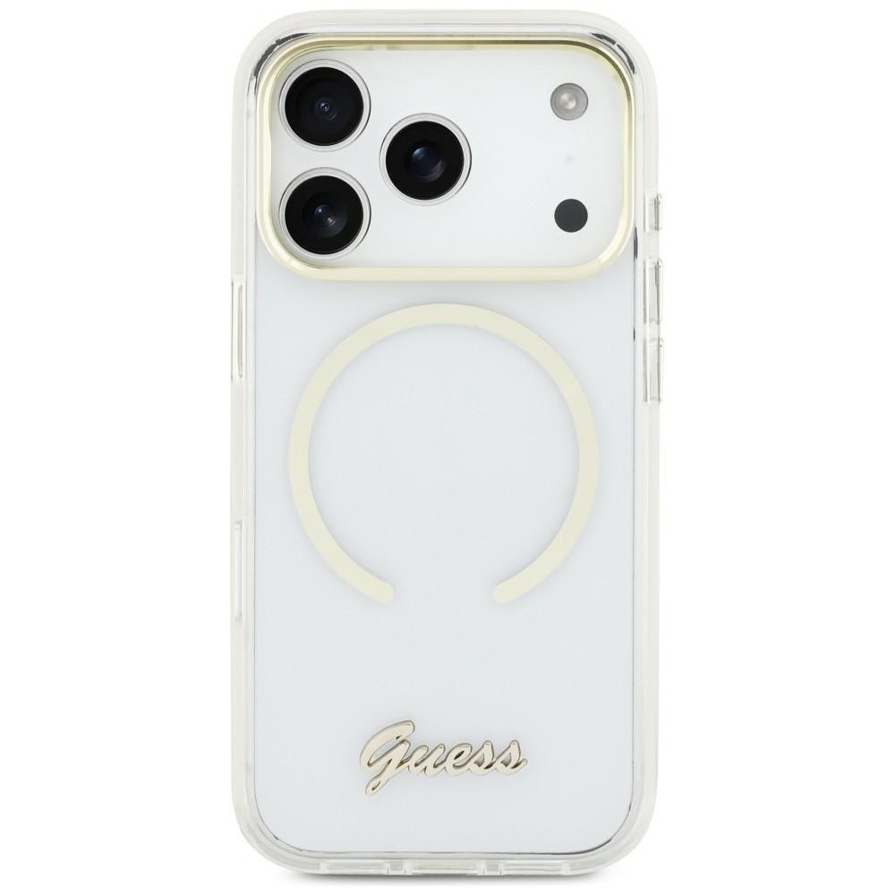 Guess IML Script Metal MagSafe iPhone 17 tok, átlátszó-arany