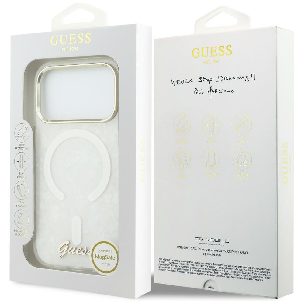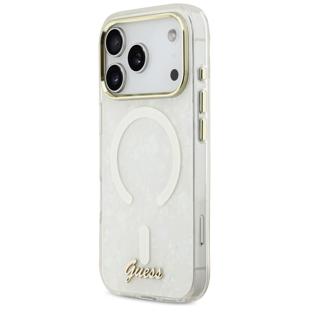 Guess IML Shell Script Metal MagSafe iPhone 17 Pro Max tok, fehér