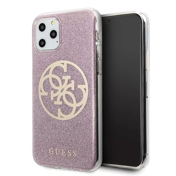 Guess iPhone 11 Pro Max 4G Glitter Circle (GUHCN65PCUGLPI) hátlap, tok, rózsaszín