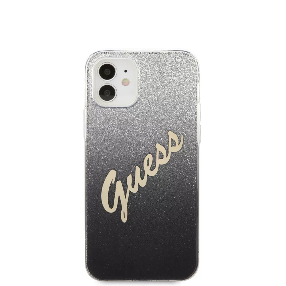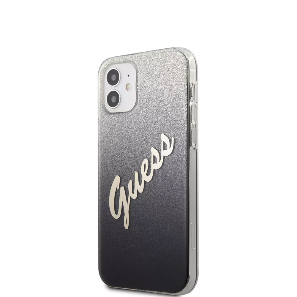 Guess iPhone 12 Mini Vintage Glitter Gradient (GUHCP12SPCUGLSBK) hátlap, tok, fekete