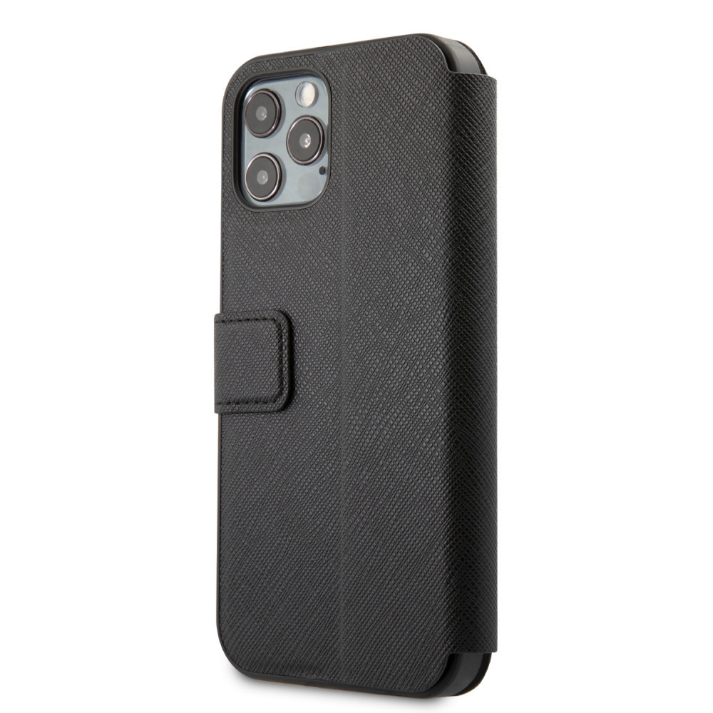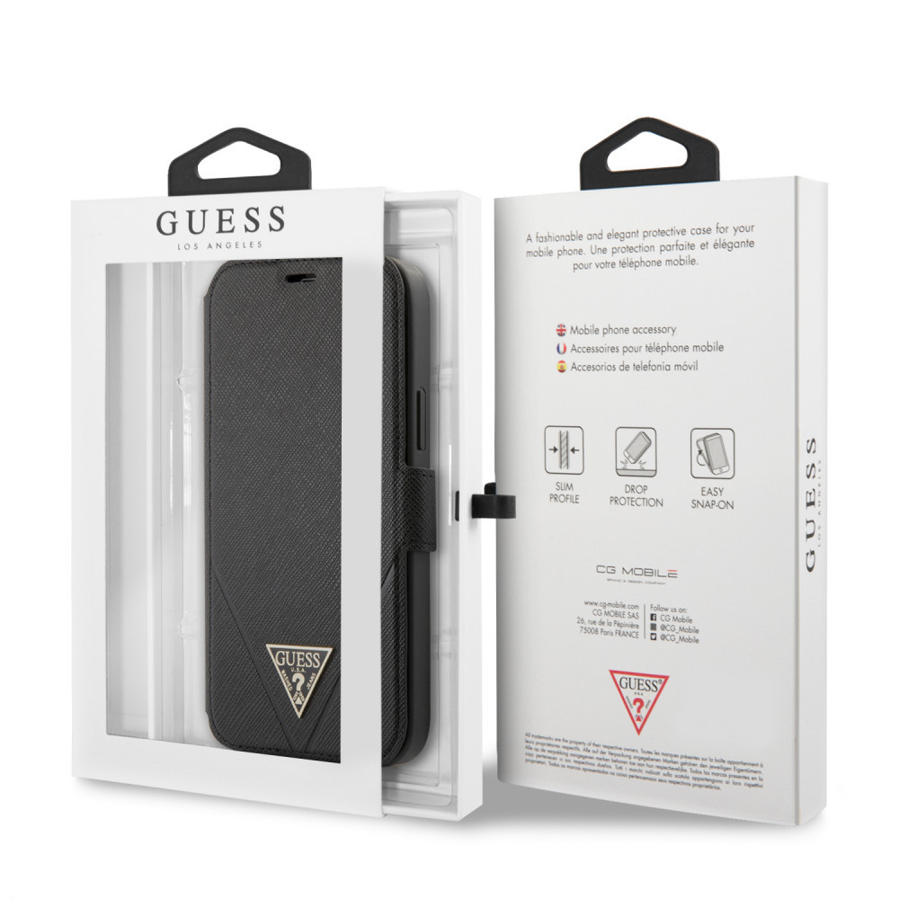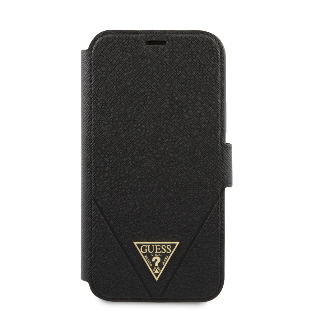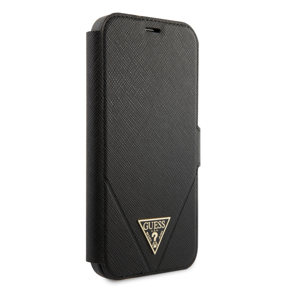 Guess iPhone 12 Pro Max Saffiano Triangle (GUFLBKP12LVSATMLBK) oldalra nyíló tok, fekete