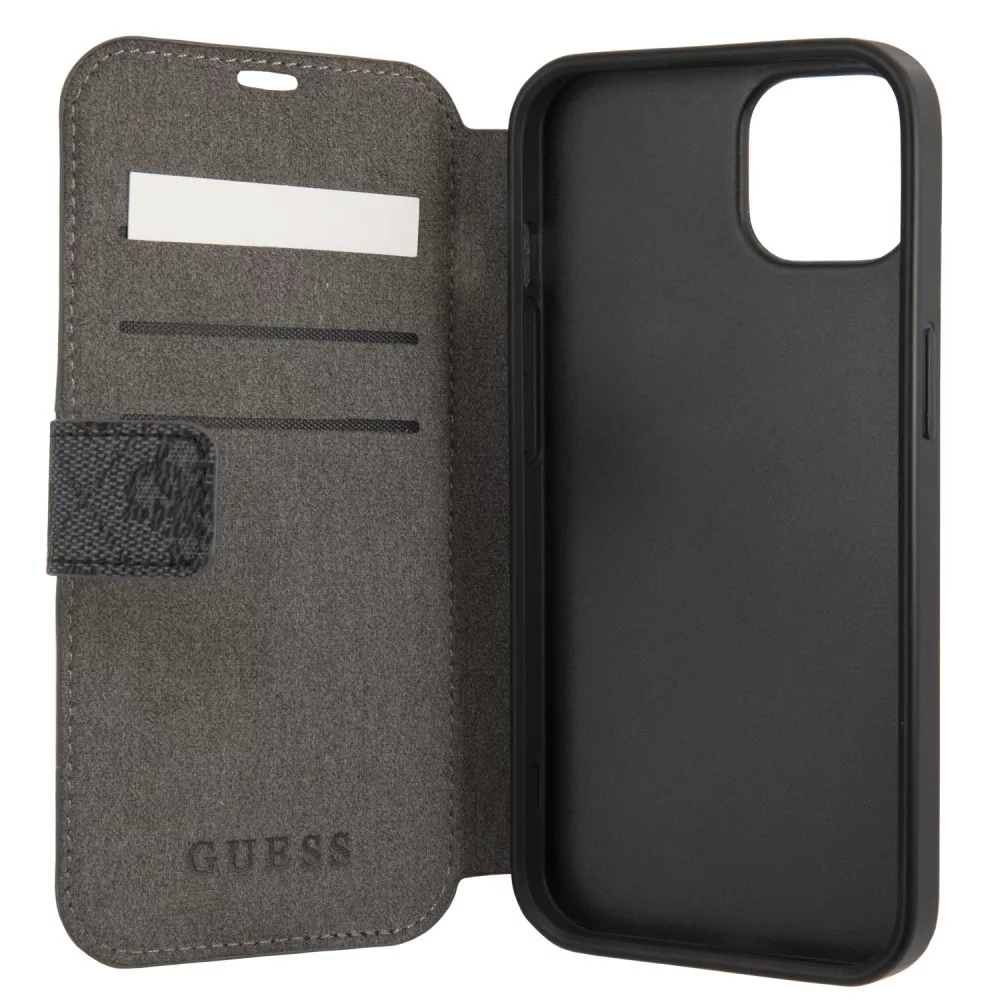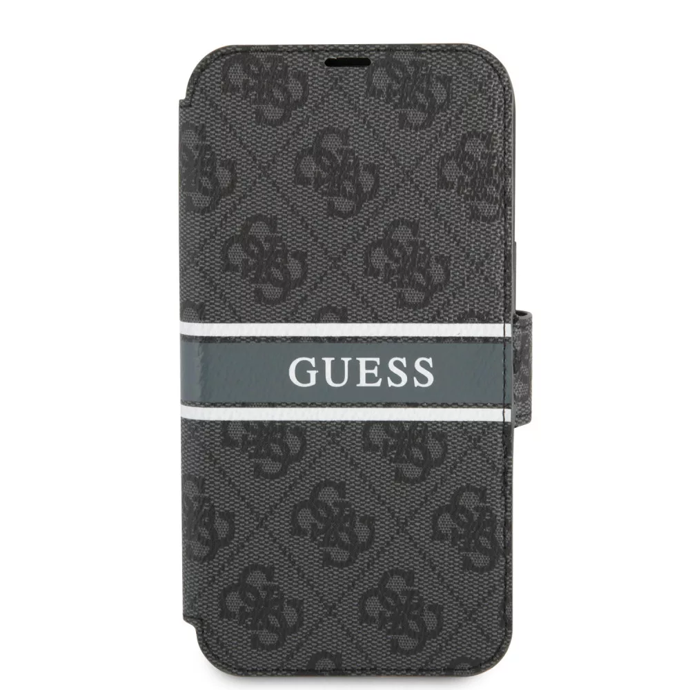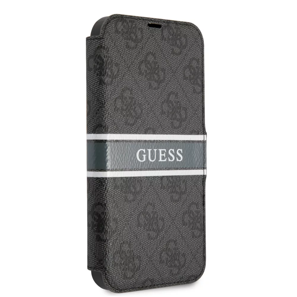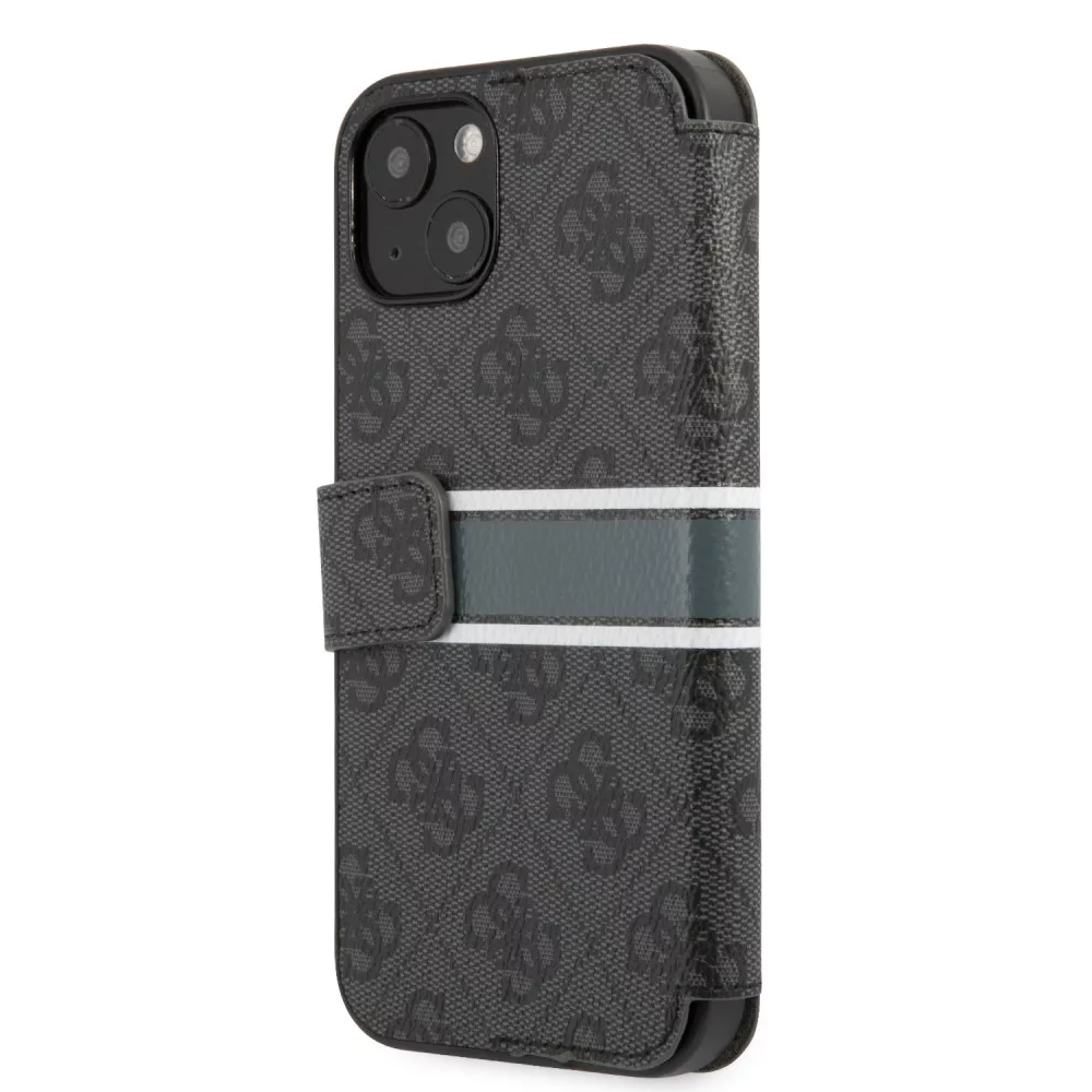 Guess iPhone 13 Mini 4G Printed Stripe (GUBKP13S4GDGR) oldalra nyíló tok, szürke