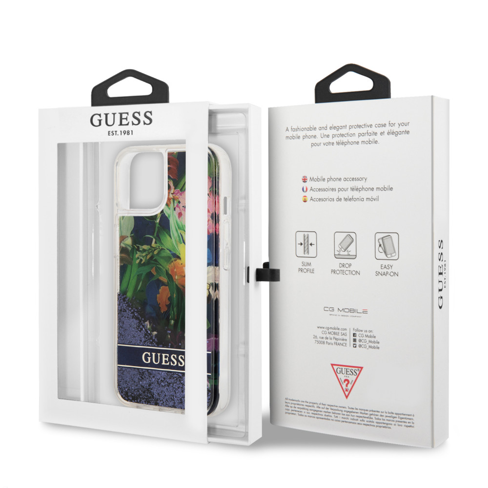 Guess iPhone 13 Mini Liquid Glitter Flower (GUHCP13SLFLSB) hátlap, tok, kék