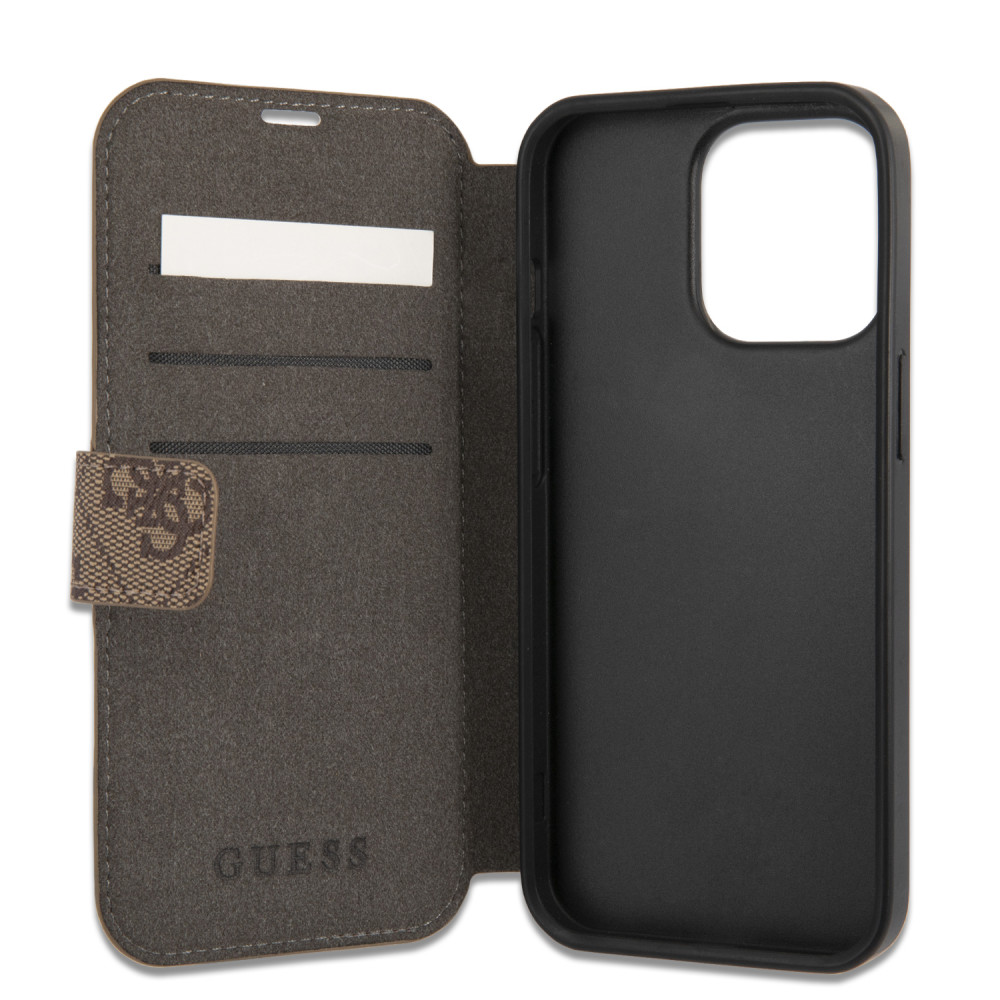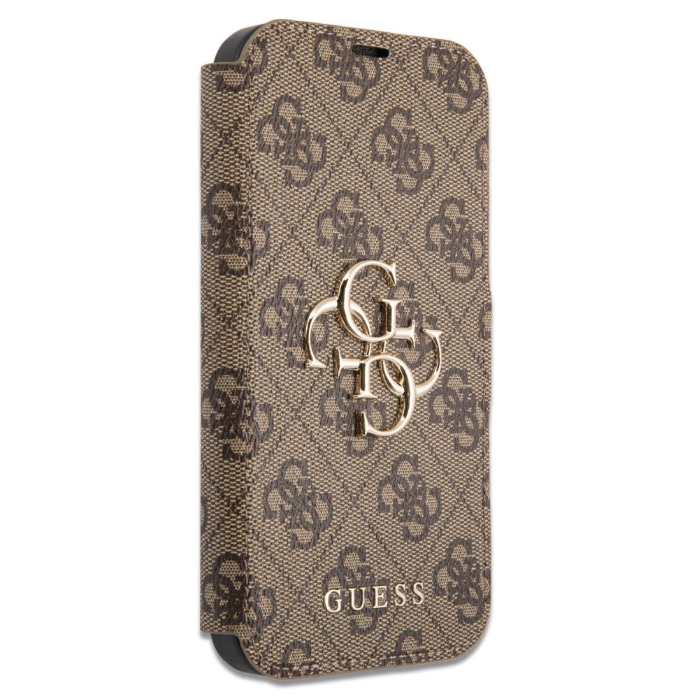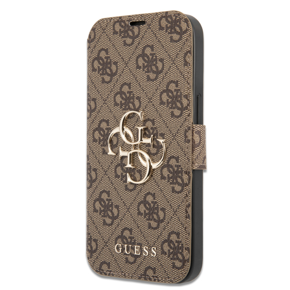 Guess iPhone 13 Pro 4G Big Metal Logo (GUBKP13L4GMGBR) oldalra nyíló tok, barna