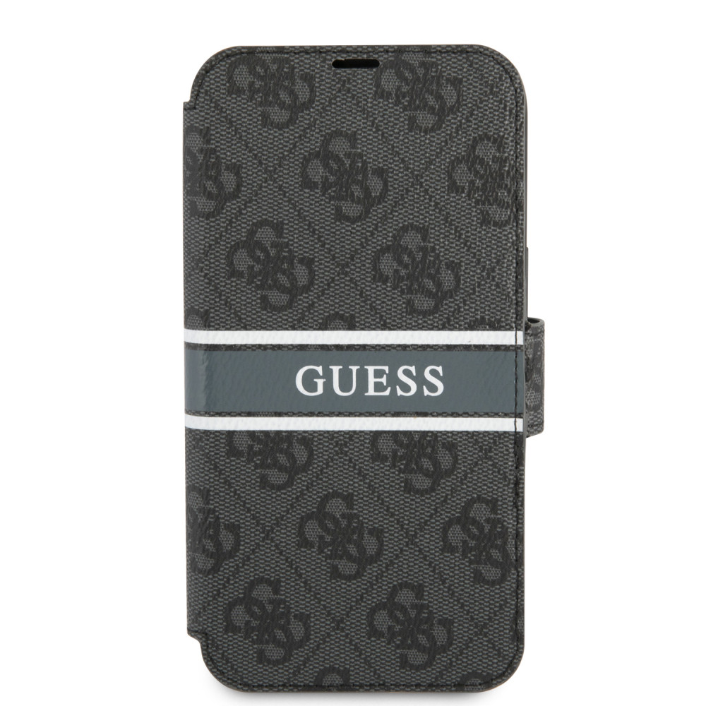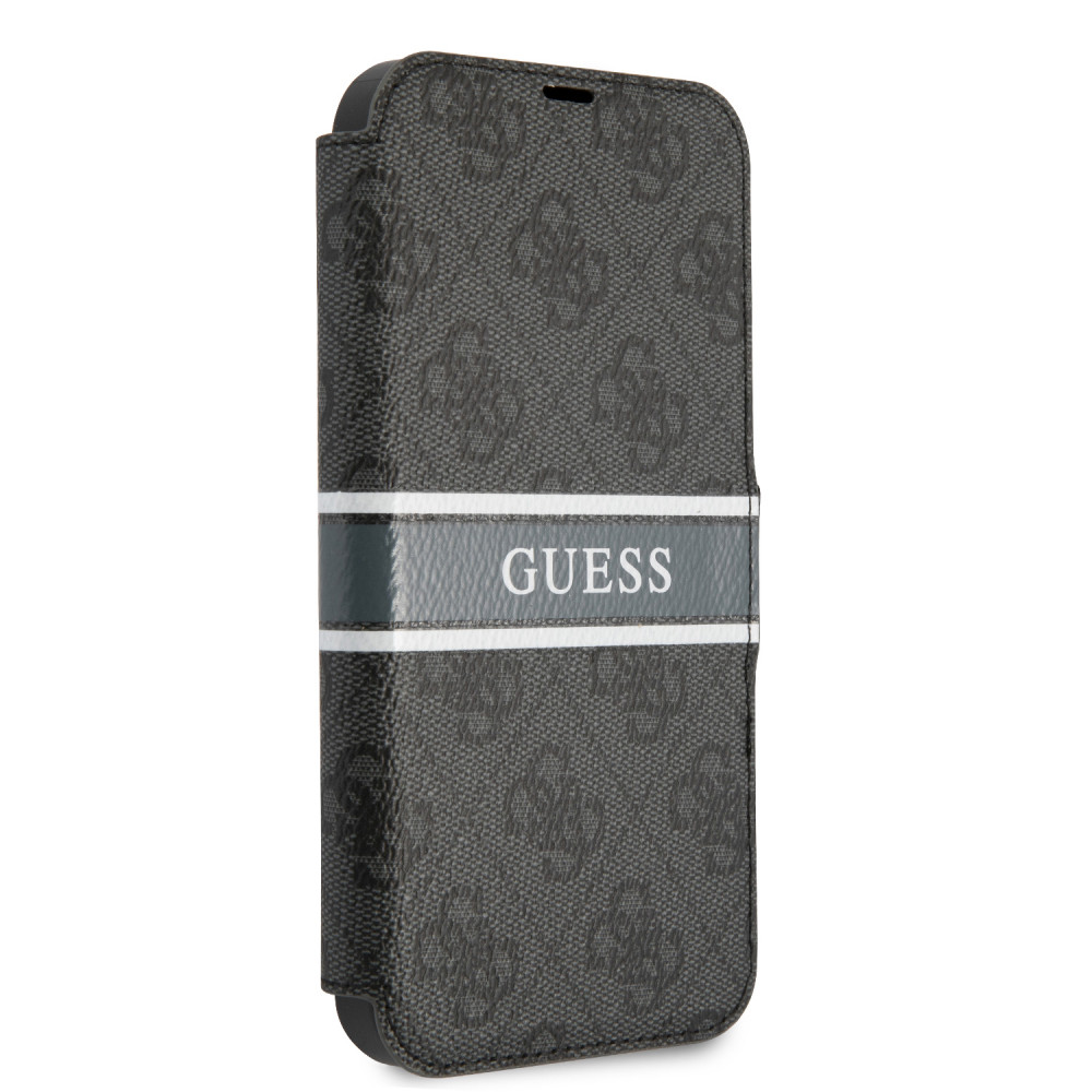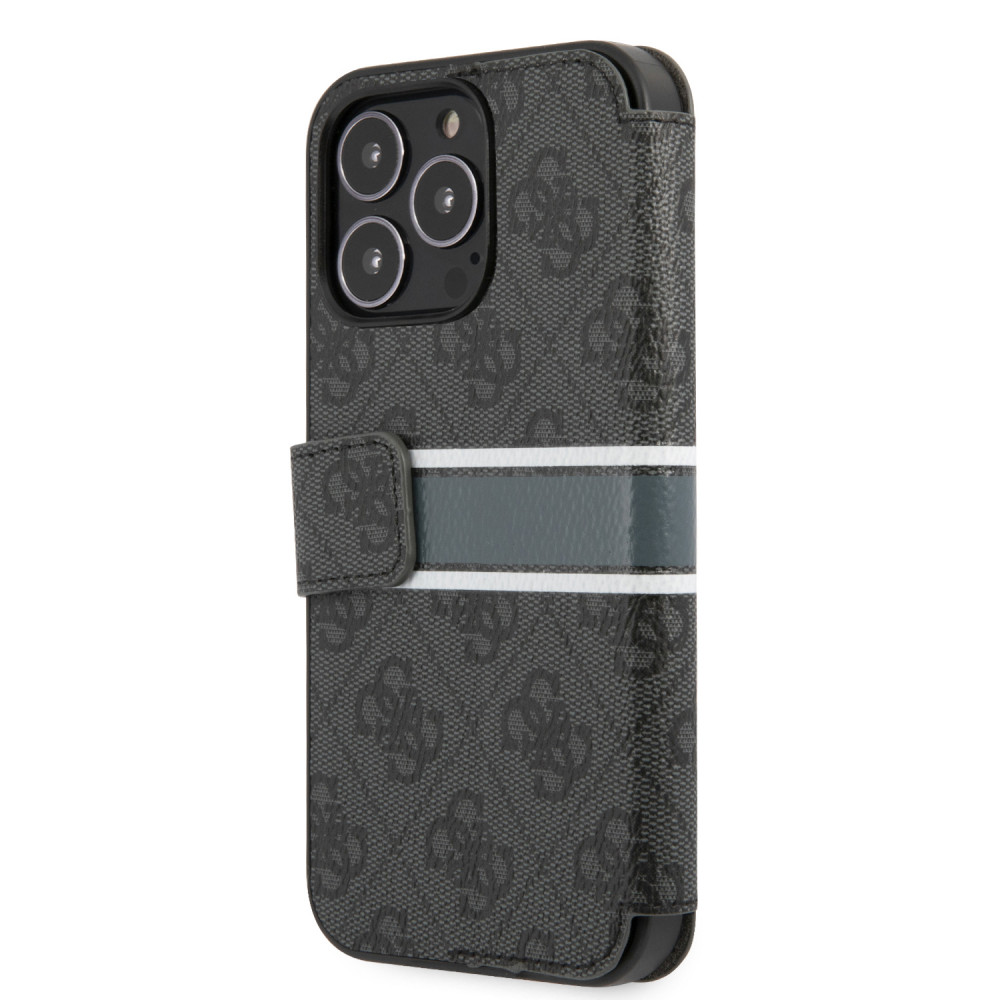 Guess iPhone 13 Pro Max 4G Printed Stripe (GUBKP13X4GDGR) oldalra nyíló tok, szürke