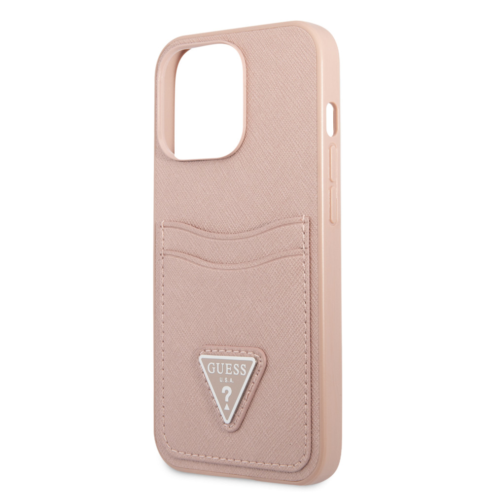 Guess iPhone 13 Pro Saffiano Double Card (GUHCP13LPSATPP) hátlap, tok, rózsaszín