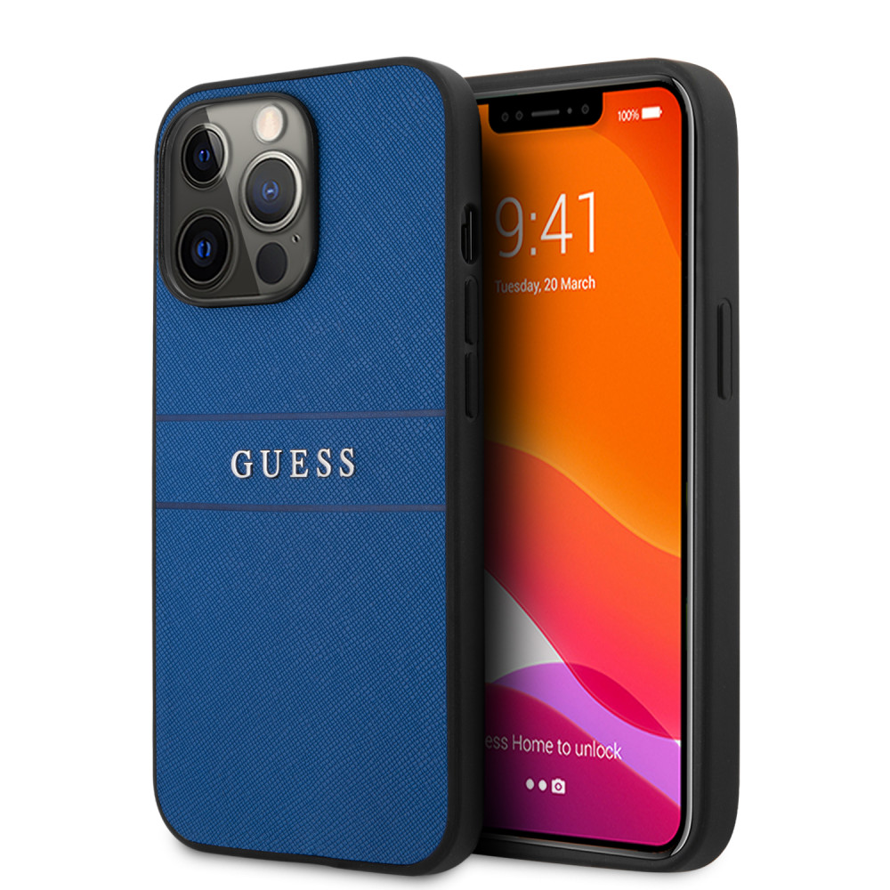 Guess iPhone 13 Pro Saffiano PU Leather (GUHCP13LPSASBBL) hátlap, tok, sötétkék