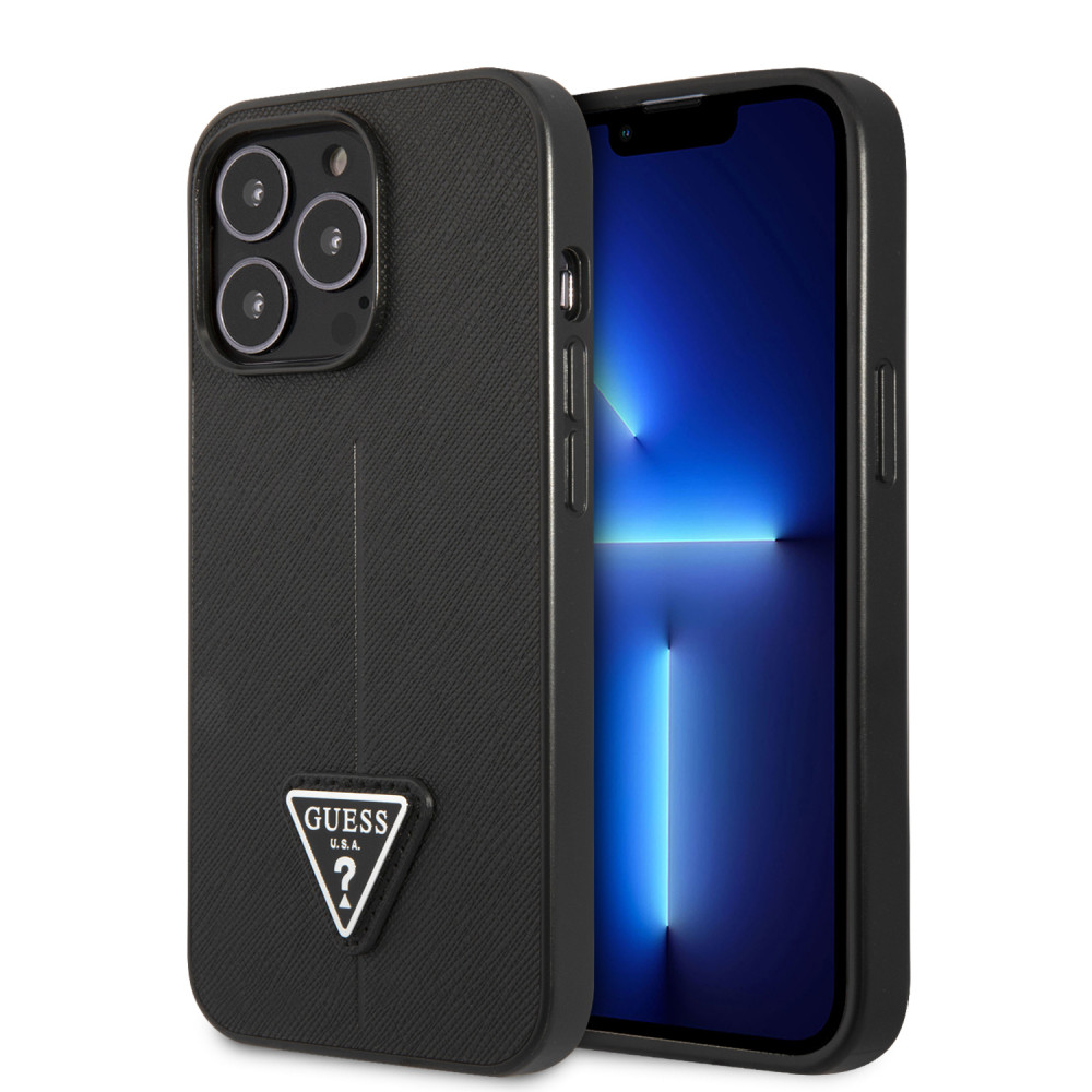 Guess iPhone 13 Pro Saffiano Triangle (GUHCP13LPSATLK) hátlap, tok, fekete