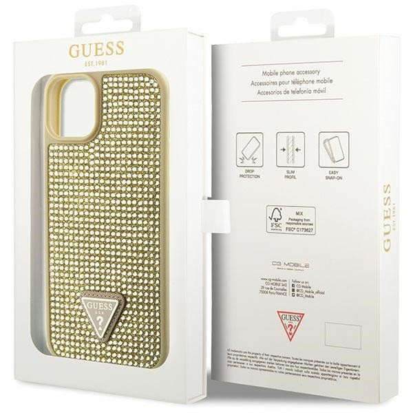 Guess iPhone 14 Plus hardcase Rhinestone Triangle (GUHCP14MHDGTPD) hátlap, tok, arany