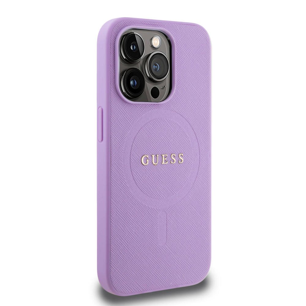 Guess iPhone 15 Pro PU 4G Strass Metal Logo (GUHMP15LPSAHMCU) hátlap, tok, lila