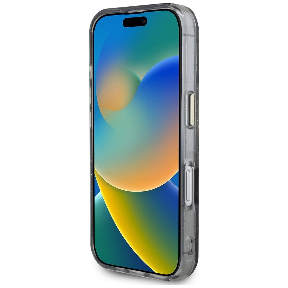 GUESS iPhone 16 MagSafe GUHMP16SHFLPEDK (IML Metal Glitter Flowers Triangle) tok, fekete