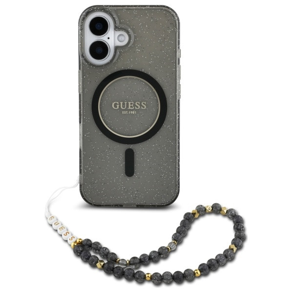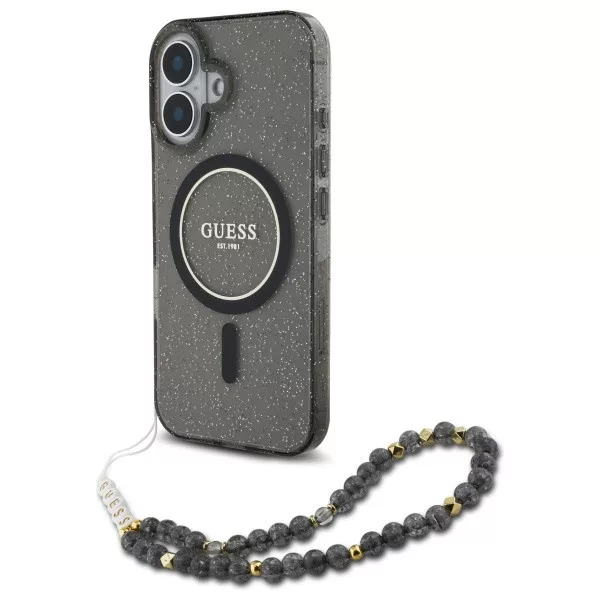 Guess iPhone 16 Magsafe IML Glitter Pearl Strap (GUHMP16SHGCRELSK) MagSafe hátlap, tok, fekete